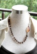 宝石質の美しいスモーキークオーツ(10mm玉)をシルク糸で結びながらつないでいったネックレスです。