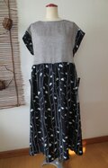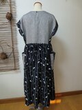 絣地に近い浴衣地で、しっかりした生地です。有松絞の浴衣地のみだとリゾートすぎますので、国産シャンブレーリネンを組み合わせました。上着を羽織って町着としても楽しめます。