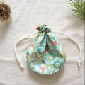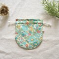 リバティのタナローン生地を使用して、小さな丸い巾着袋を作りました。
