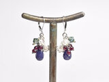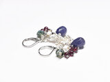 サファイアアゲート、ハーキマーダイヤモンド、ガーネット、モスアゲートとカレンシルバーチャームを繋いだピアスです。