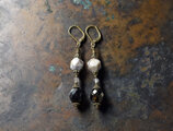 メタリックブラックチェコビーズとラグナレースアゲート、ラブラドライトを繋いだピアスです。