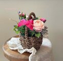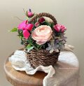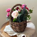 ナチュラルな持ち手のあるバスケットにローズとハーブのアレンジをしました