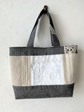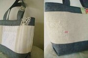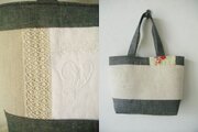 フランスの手刺繍アンティークモノグラムとリネンを使ったトートバッグです