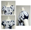 紺地に大きな白いクレマチス柄の浴衣からリメイクしました。