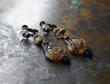 アンモナイト型のチェコビーズと小さな瑠璃色アンティークビーズを繋いだイヤリングです。