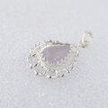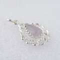 藤の花や紫陽花を想わせるような上品な色合いのフローライトを、ドロップレースパーツに留めで華やかなペンダントに仕上げました。