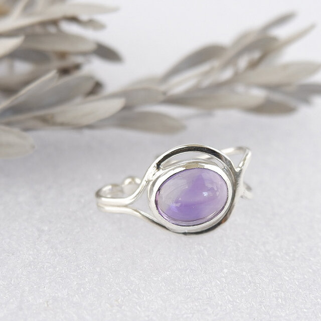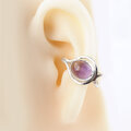 透明感のある明るめな色合いのアメシストを銀線で作ったイヤーカフに留めてみました。
