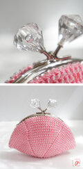 口金 : シルバー、クリアダイヤつまみ、10.5cm、丸型、両カン