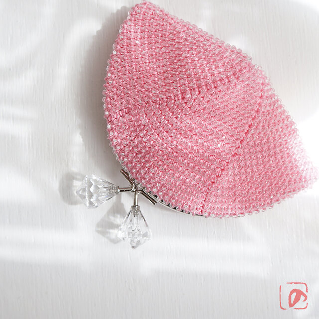 ばあば作☆アクリルビーズの大きめがま口(rosee・1476)