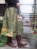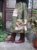 紬+縮緬☆着物リメイクスカート☆シックでおしゃれ73cm丈