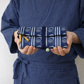 オーダー 道中財布 ロールバッグ デニム紺製 「鎌輪奴 かまわぬ 銀」