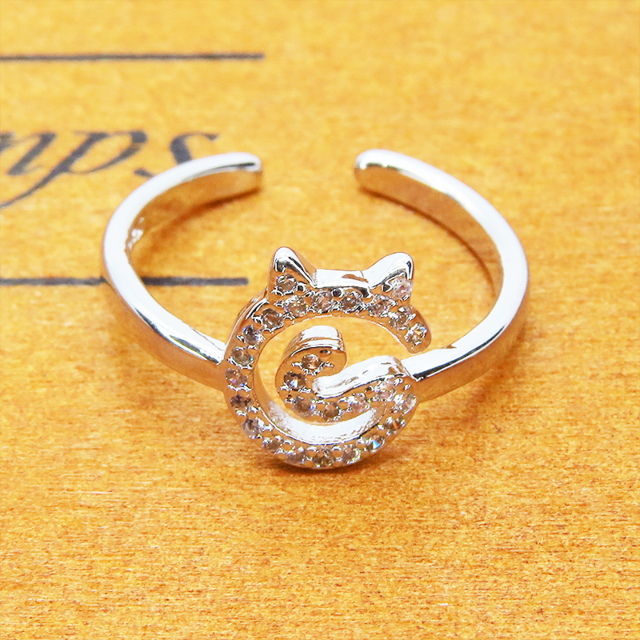くるくる巻いた尻尾と猫耳モチーフのデザインリング シルバー925 キュービックジルコニア フリーサイズ