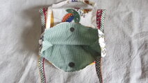 裏地はグリーンのギンガムチェック柄で、入り口にマグネットボタンがついています。