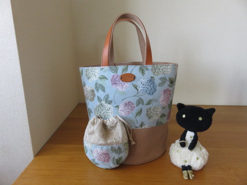 ちょっとしたお出かけに気分が上がるようなバッグ、お揃いの巾着も可愛いです。
