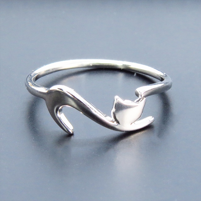 シルバー925 繊細で柔らかいラインの猫シルエットモチーフリング 指輪 フリーサイズ