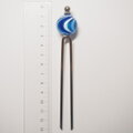 ぐるぐる模様とんぼ玉のかんざし 透明青系 二本足
