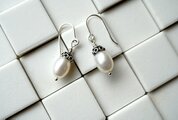 キャップをかぶった大粒ライスパールの1粒ピアス