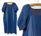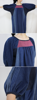 インディゴ染め手織り綿でゆったりシルエットのワンピースを作りました。
