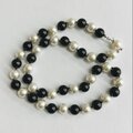 ガラスパールオールノットネックレス/8mm約42cm/ブラック&ホワイト/R/made in japan
