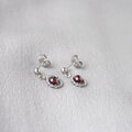 カットがキラリと輝きほんのり透明感のある真紅のガーネットにツイストリングを合わせた小ぶりで上品な雰囲気のピアスです。
