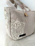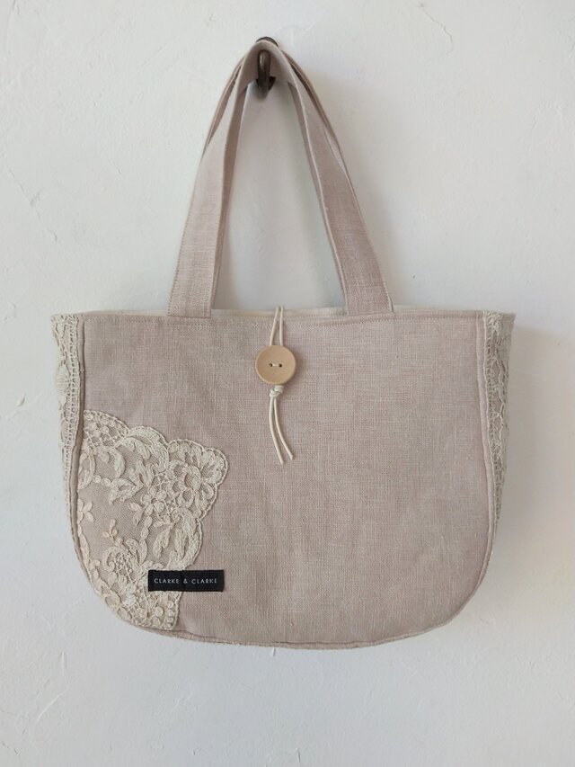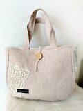 リネンとハンドメイドレースでナチュラルな雰囲気のトートバッグになっています。