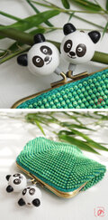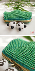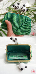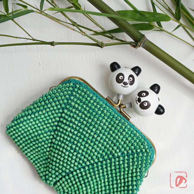 ばあば作 ♫ 仲良しパンダのビーズがま口(竹緑・1484)