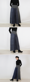ウエストはハーフゴム、渡り幅も膝回りもゆったり、履き心地はとても楽で寒い季節はタイツ等を中に履いても余裕があります。