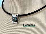 矩形の枠にテリの良い黒蝶真珠を埋め込んだペンダントはシンプルで力強い質実剛健なイメージ。ネーミングはもちろんドイツ語のRechteck(矩形)から。太めの黒色レザーコードと合わせたモノトーンでキリッとした美しさは男女問わず惹かれますね。