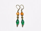グリーンチェコビーズと手毬ブラスビーズ、カーネリアンを繋いだピアスです。