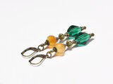グリーンチェコビーズと手毬ブラスビーズ、カーネリアンのピアス