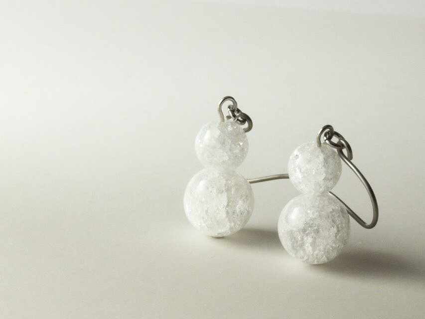 ■天然石■クラッククォーツのゆきだるまピアス