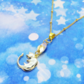 まるで寝ているかのような丸くなっている姿の猫のシルエットモチーフに、ゴールドシャドーの大きめスワロフスキーを加えたネックレスです