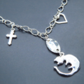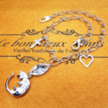 まるで寝ているかのような丸くなっている姿の猫のシルエットモチーフに、クリアカラーの大きめスワロフスキーを加えたブレスレットです