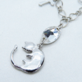 丸くなってる可愛い猫モチーフと大きめスワロスフキー(クリアカラー)のブレスレット シルバーカラー