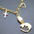 丸くなってる可愛い猫モチーフと大きめスワロスフキー(ゴールドシャドー)のブレスレット ゴールドカラー