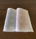 届きました!あみちゃんさんのふきんは、裏の模様もとてもきれいなのでなるべく両方みえる使いかたをしています。 さて、この横長、どう使おうかな、と考えるのが又楽しいです。ありがとうございました。