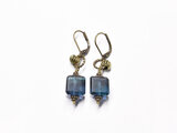 ブルーグリーンフローライトとブラスビーズを繋いだピアスです。