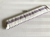 ★扇子ケース がま口タイプ 白地に紫博多献上帯 24センチ★