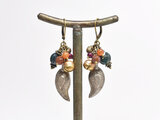ペイズリーのようなパーツと3種類の天然石、2種類の鈴を繋いだピアスです。