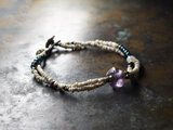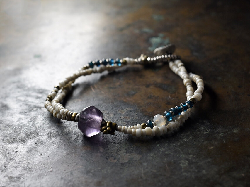 すみれ色ドゴンビーズと古代瑪瑙、oldオリッサブラス、インディゴブルービーズ、ホワイトシドービーズを繋いだ2連のブレスです。