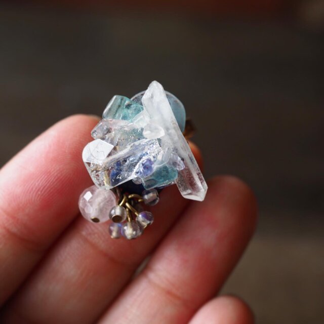 ブルー系の鉱物を集めた耳飾り(イヤーカフ)です。
