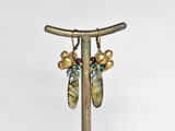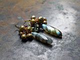ラブラドライト、たわわな鈴とモスアゲート 、ガーネットを繋いだピアスです。