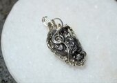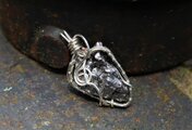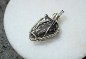 貴重な鉱物、珍しい隕石のカンポ・デル・シエロ メテオライトをシルバーのワイヤーで巻いてネックレスにしました。