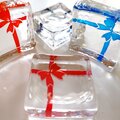 四角い形を生かし、箸置きをプレゼントの箱に見立てりぼんをかけてみました。