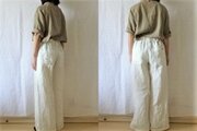 【受注制作】オフ白/ヴィンテージ風リネンツイル シンプルワイドパンツ