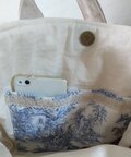 スマホサイズのポケットはトワルドジュイにレースを付けています