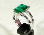 珍しい合成エメラルドを使った指輪です。合成エメラルドはインクルージョン(内包物)まで細かにに模倣して作られています。ロストワックス(専用のロウで枠の原型を作り、その形通りに鋳造する製法)で作ったオリジナルの枠を使っています。