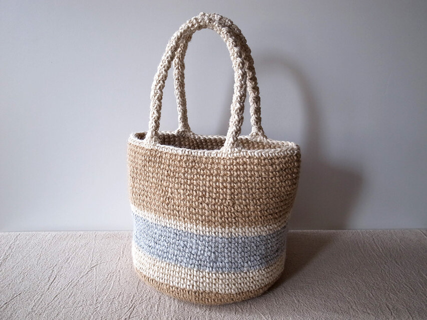 ほんのりラメの入ったブルーグレーの麻ひもがさわやかな印象です。