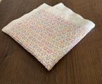 届きました!あみちゃんさんのふきんは、裏の模様もとてもきれいなのでなるべく両方みえる使いかたをしています。 さて、この横長、どう使おうかな、と考えるのが又楽しいです。ありがとうございました。