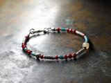 カレンシルバーと古代瑪瑙、濃赤&ターコイズブルーホワイトハーツのブレス